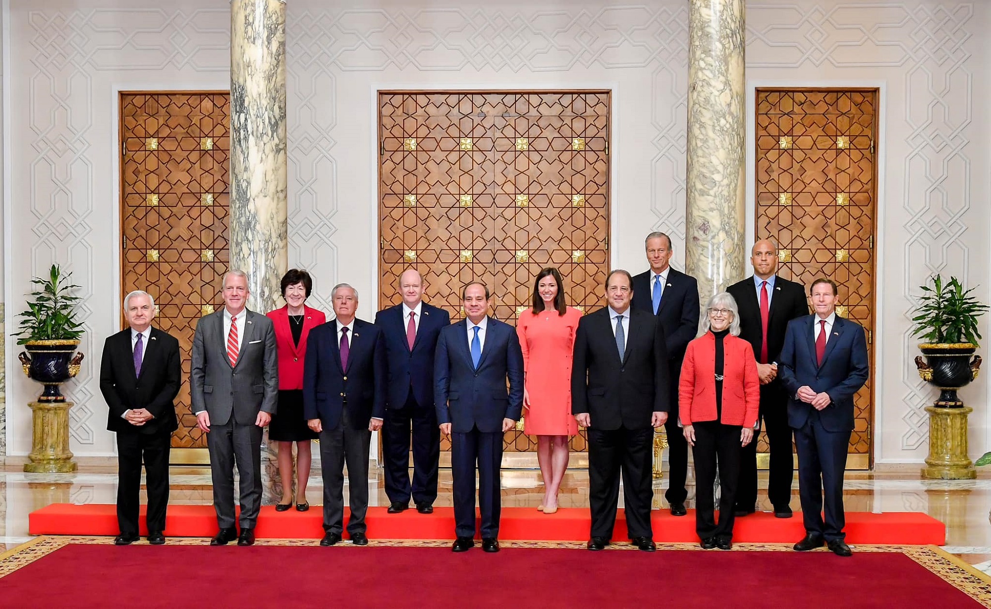ناقش الرئيس المصري، عبد الفتاح السيسي تطورات الأوضاع في قطاع غزة، مع وفد من الحزبين الديمقراطي والجمهوري بمجلس الشيوخ الأميركي، على رأسه السيناتور ليندساي جراهام، خلال زيارته لمصر، مؤكدا رفض استهداف المدنيين في غزة.