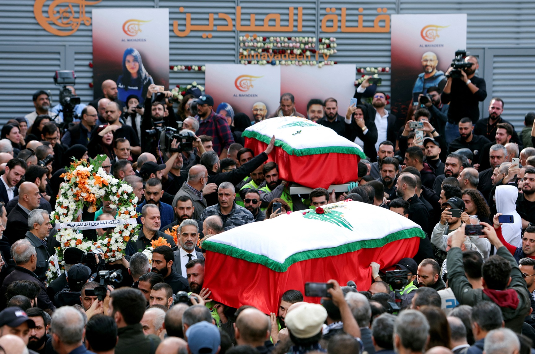 أخبار العالمقناة الغد لبنان يشيع صحفيين استشهدا في غارة جوية إسرائيلية في 22 Nov 2023, 17:36 134 أنشر توافد مئات المشيعين في بيروت يوم الأربعاء لتوديع صحفيين كانا يعملان في قناة الميادين العربية وقتلا يوم الثلاثاء في غارة إسرائيلية على جنوب لبنان. قناة إخبارية تنويرية — المصدر 134 أنشر