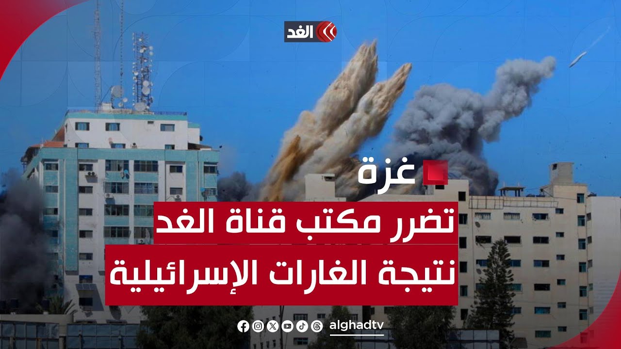 فيديو| تضرر مكتب قناة الغد في غزة جراء الغارات الإسرائيلية