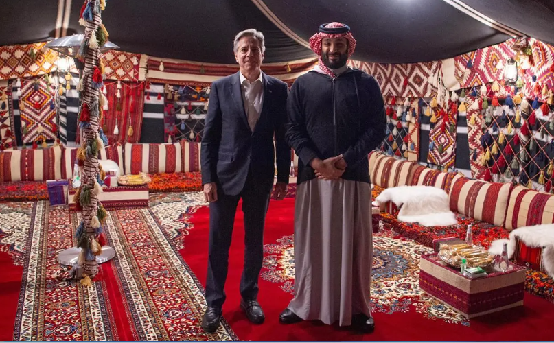 التقى الأمير محمد بن سلمان بن عبدالعزيز آل سعود ولي العهد السعودي رئيس مجلس الوزراء، في المخيم الشتوي في العُلا، اليوم الإثنين، وزير الخارجية الأميركي أنتوني بلينكن.