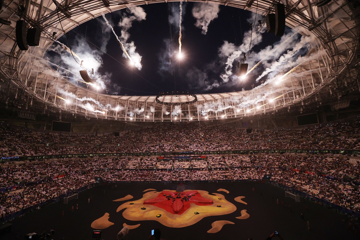 استضاف استاد لوسيل، الذي احتضن نهائي كأس العالم لكرة القدم 2022 بين الأرجنتين وفرنسا، حفل افتتاح كأس آسيا 2023 الذي شهد إلقاء قائد منتخب فلسطين لقسم البطولة.