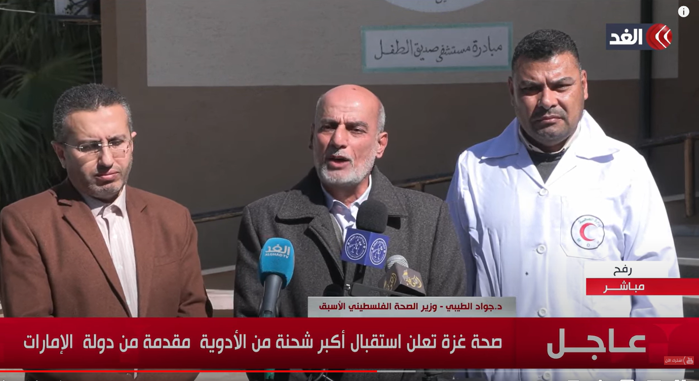 أخبار العالمقناة الغد «صحة غزة» تعلن استقبال أكبر شحنة من الأدوية مقدمة من دولة الإمارات في 8 Feb 2024, 12:36 282 أنشر وجه وزير الصحة الفلسطيني الأسبق، جواد الطيبي، اليوم الخميس، الشكر للشيخ محمد بن زايد آل نهيان رئيس دولة الإمارات، على دعم القطاع الصحي في غزة. قناة إخبارية تنويرية — المصدر 282 أنشر