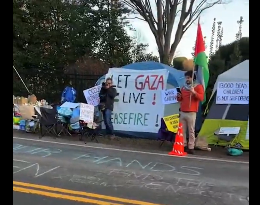 منذ يناير/كانون الثاني الماضي، يخيم عدد من المتظاهرين الداعمين للفلسطينيين، أمام منزل وزير الخارجية الأميركي أنتوني بلينكن بولاية فرجينيا، من أجل المطالبة بوقف إطلاق النار في غزة وإنهاء العدوان الإسرائيلي على القطاع.