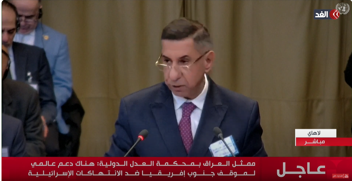 ممثل العراق أمام محكمة العدل الدولية: هناك دعم عالمي لموقف جنوب إفريقيا ضد الانتهاكات الإسرائيلية