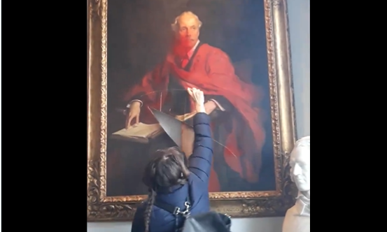 ناشطة تمزق صورة صاحب وعد بلفور بجامعة كامبريدج في بريطانيا