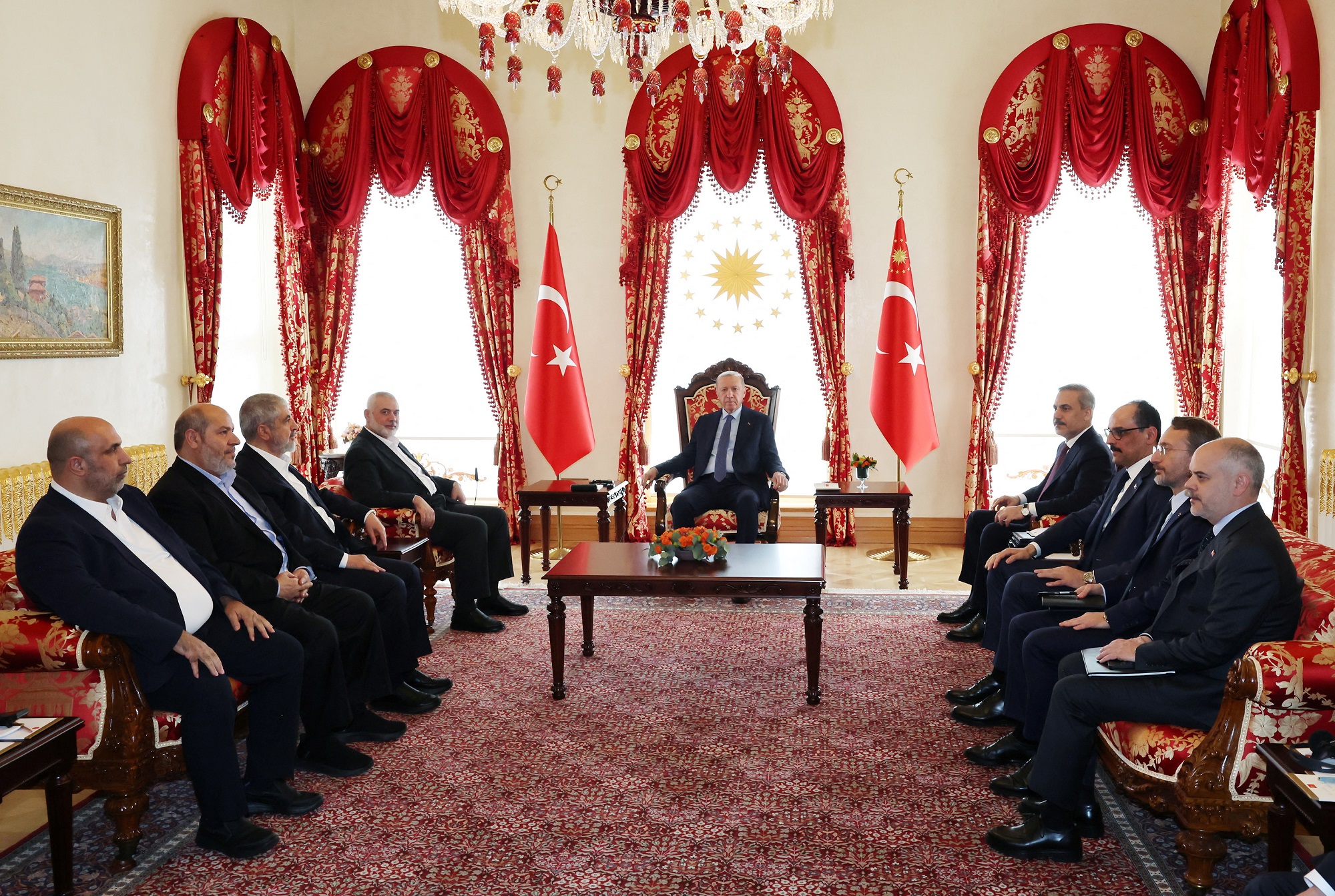 التقى الرئيس التركي رجب طيب أردوغان برئيس المكتب السياسي لحركة حماس إسماعيل هنية، أمس السبت في إسطنبول، في اجتماع هو الأول بين أردوغان ووفد لحماس يرأسه هنية منذ بدء العدوان الإسرائيلي على غزة قبل أكثر من 6 أشهر.