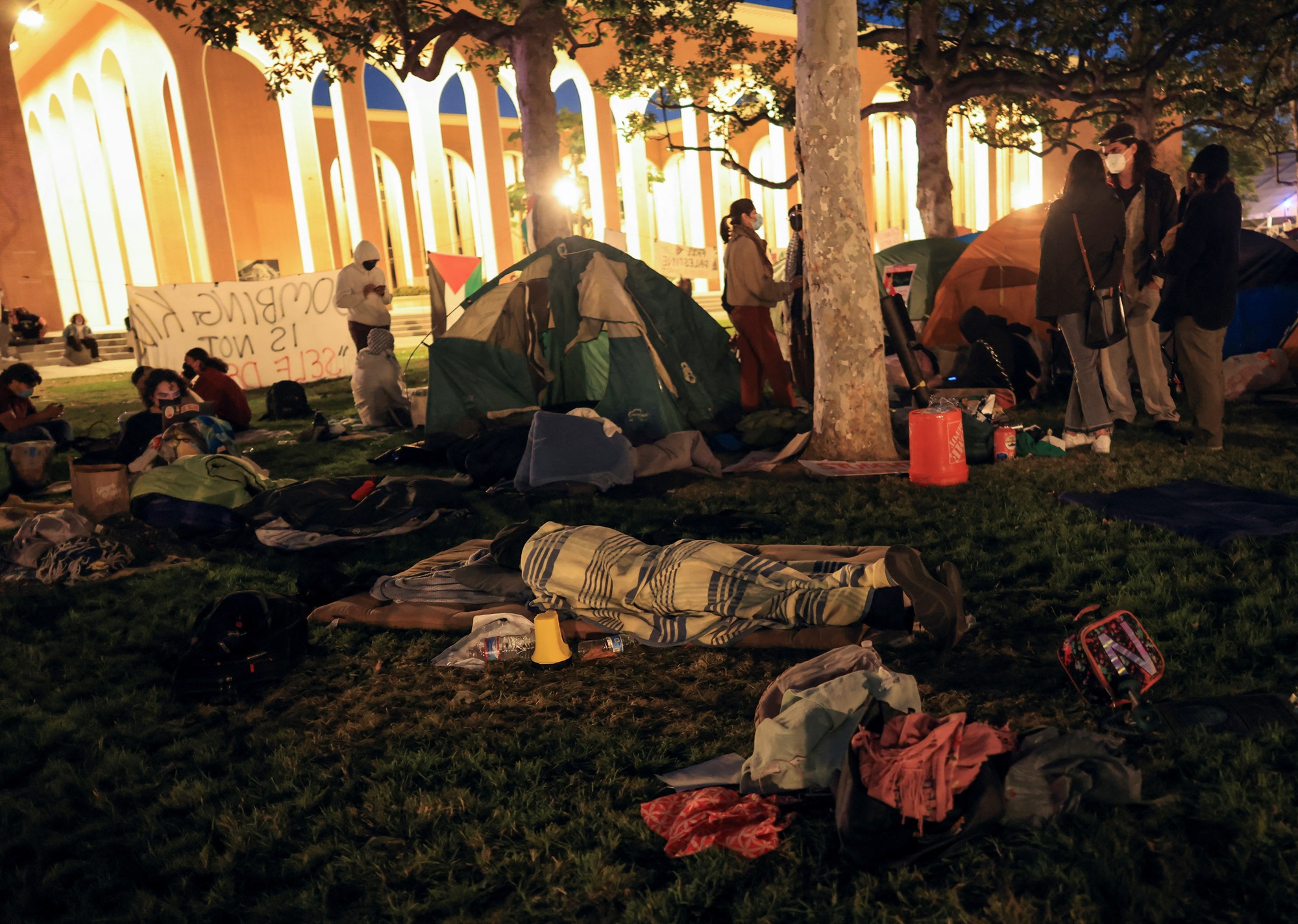 استيقظ الطلاب المحتجون على العدوان الإسرائيلي على غزة في خيام بالحرم الجامعي في جميع أنحاء الولايات المتحدة صباح الأحد للتخطيط لمزيد من الاحتجاجات التي تطالب الجامعات بقطع العلاقات المالية مع إسرائيل وسحب استثماراتها من الشركات المتهمة بتأجيج الصراع.
