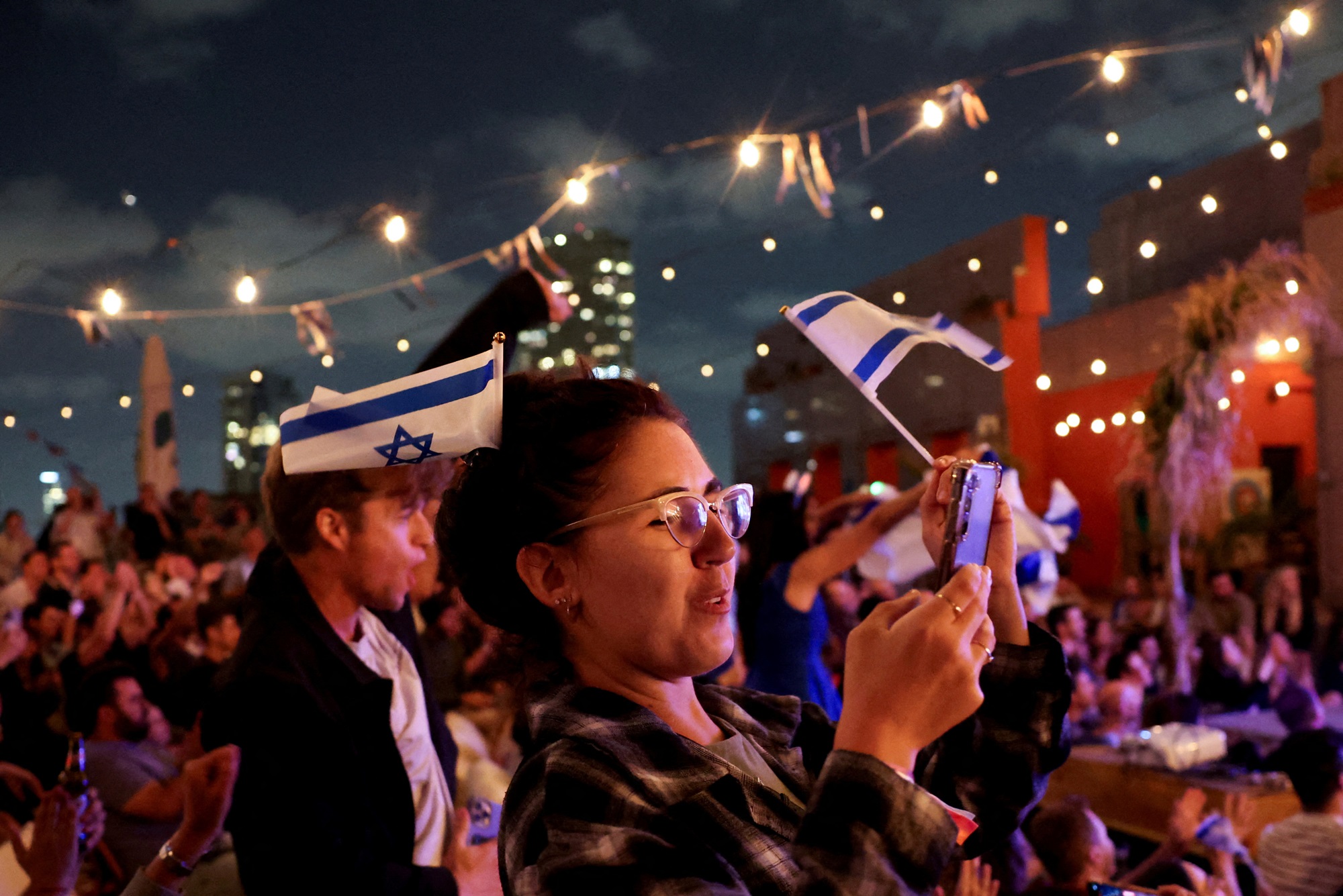 احتشد المئات من الإسرائيليين في شوارع تل أبيب، اليوم السبت، لمشاهدة البث المباشر لمسابقة الأغنية الأوروبية «يوروفيجن» المقامة في مدينة مالمو السويدية، بينما كانت تسمع أصوات الغارات العنيفة على جباليا في الضواحي الجنوبية من تل أبيب.