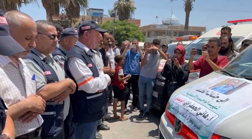 أدت طواقم الإسعاف والطوارئ بوزارة الصحة في غزة، اليوم الإثنين، صلاة الغائب على زميلهم مدير الإسعاف بمدينة غزة، هاني الجعفراوي، الذي استشهد، أمس الأحد، في غارة إسرائيلية.