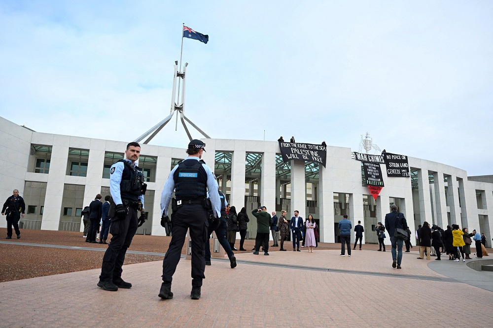 أخبار العالمقناة الغد متظاهرون داعمون لغزة يصعدون فوق سطح البرلمان الأسترالي في 4 Jul 2024, 3:35 87 أنشر أظهرت لقطات تلفزيونية متظاهرين داعمين لغزة فوق سطح مبنى البرلمان الأسترالي في كانبيرا يوم الخميس واتهموا إسرائيل بارتكاب جرائم حرب. قناة إخبارية تنويرية — المصدر 87 أنشر