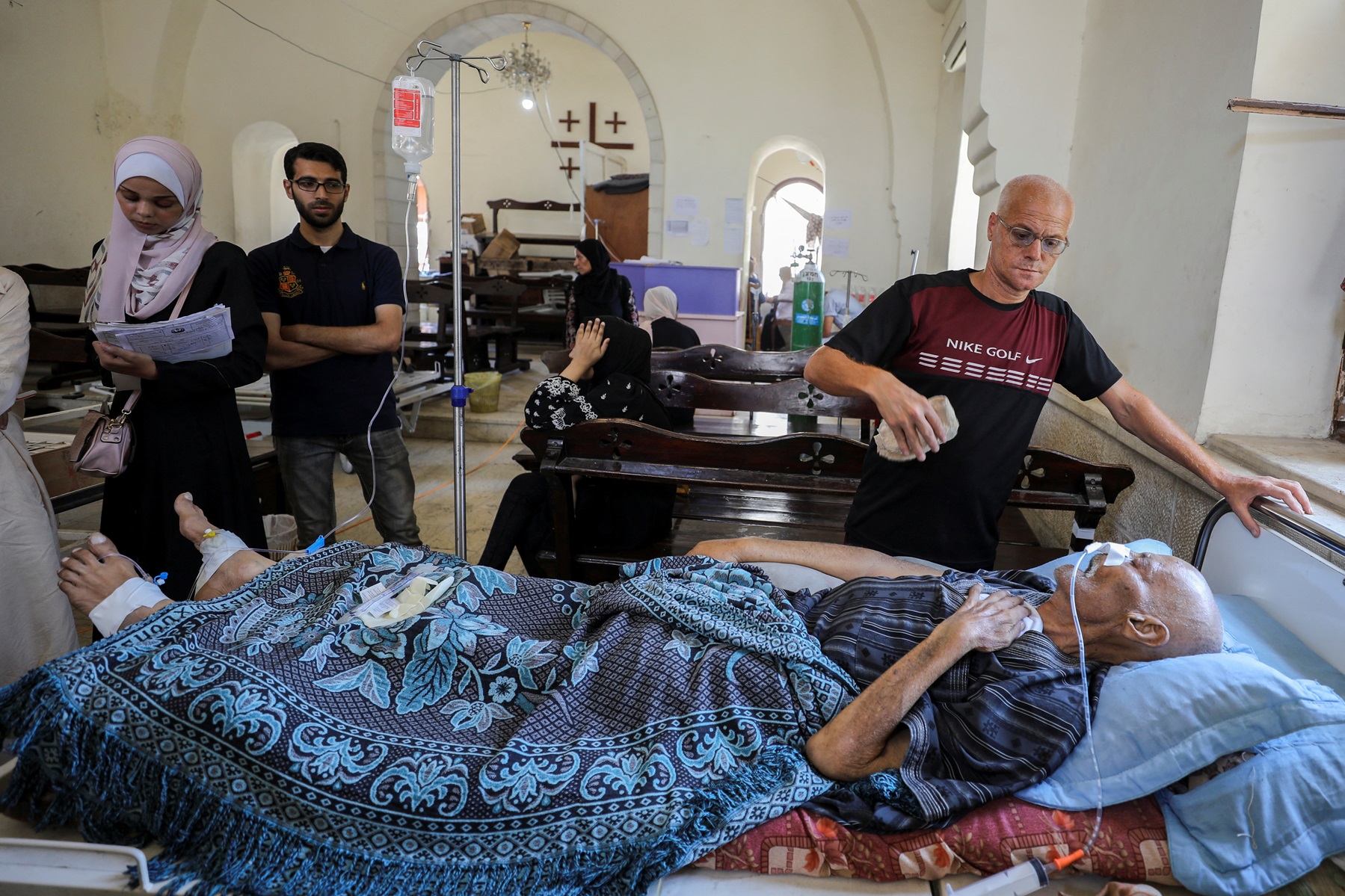 بعد تسعة أشهر من العمليات العسكرية الإسرائيلية التي قوضت النظام الصحي في قطاع غزة الفلسطيني، حوَل قساوسة كنيسة القديس فيليب في مدينة غزة كنيستهم إلى عيادة طبية.