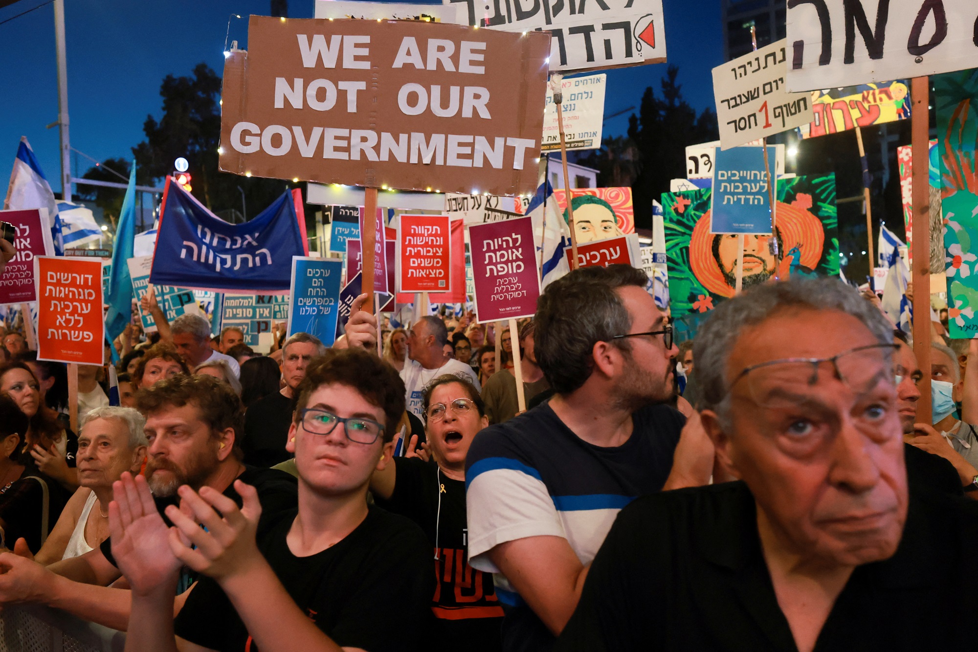 تظاهر مئات الإسرائيليين، صباح الثلاثاء، أمام منازل عدد من نواب الكنيست المنتمين إلى حزب الليكود، بزعامة رئيس الوزراء بنيامين نتنياهو، مطالبين بإسقاط الحكومة وإعادة المحتجزين في قطاع غزة.