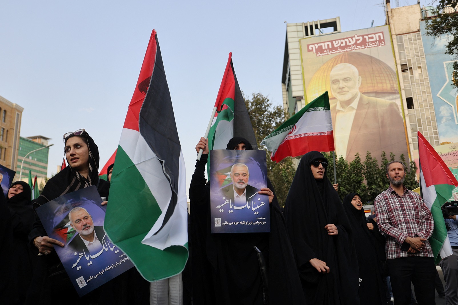 احتشد الآلاف في طهران لتشييع رئيس المكتب السياسي لحماس إسماعيل هنية الذي اغتالته إسرائيل أمس الأربعاء، وشارك المرشد الأعلى في إمامة المشيعين، وقال رئيس البرلمان الإيراني محمد باقر قاليباف إن من واجب إيران والمقاومة الرد على إسرائيل في المكان والوقت المناسبين.