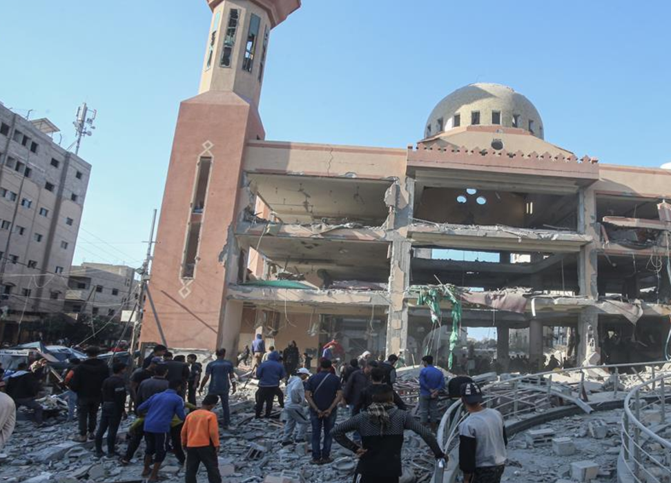 كاميرا الغد ترصد مشاهد الدمار بعد قصف مسجد الفاروق وسط قطاع غزة